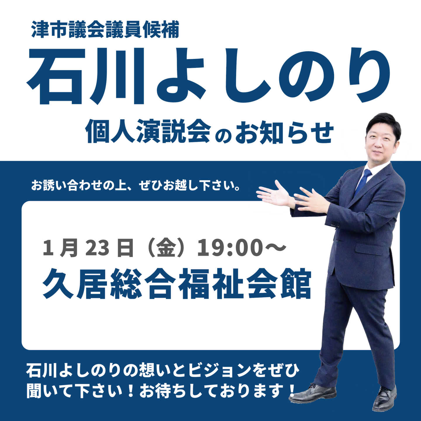 私は市民の皆様としっかり向き合い耳を傾け、いま何が必要なのか、そして10年20年後未来の津市はどうなっていくべきかをしっかり考えて取り組んでいきたいと思います。